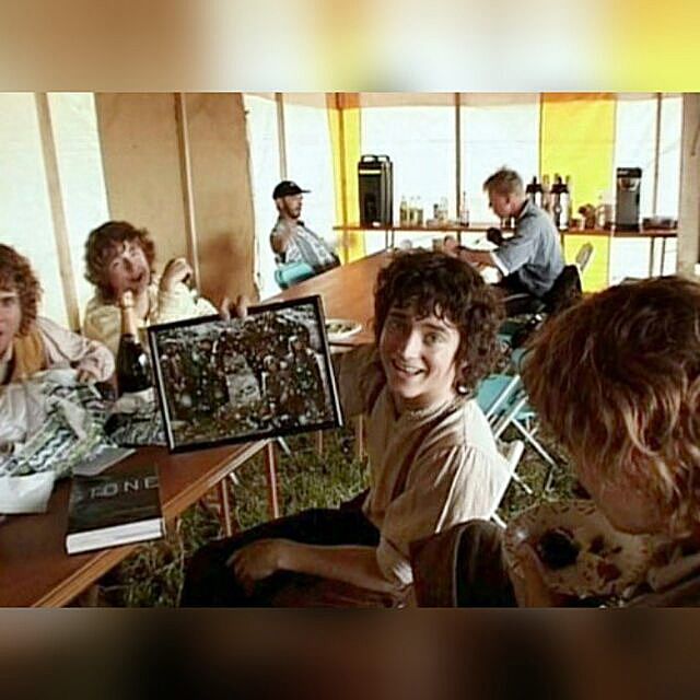 Sometimes I forget how small the hobbits were truly supposed to be. Using a child to substitute for these characters is such a striking reminder of their miniature scale when compared to their human/average sized counterparts. In scenes that only feature hobbits and other small creatures, one can so easily forget that these men aren't of average size and builds. This photo, from the smiles to the sunny day visible in the background, just emits such a positive and joyful energy.